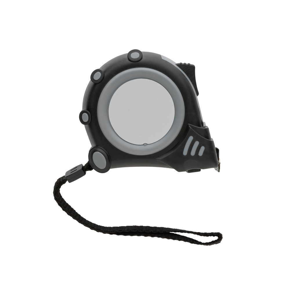 5-метрова ролетка, направена с RCS (Recycled Claim Standard) сертифициран рециклиран ABS. Общо рециклирано съдържание: 15% на базата на общото тегло на артикула. RCS сертификацията гарантира напълно сертифицирана верига за доставки на рециклирани материали. С луксозна гумена дръжка TRP за допълнителен контрол. С бутон за освобождаване/задържане. С 19 мм едностранна ролетка, жълта с черна кука от въглеродна стомана с два вградени магнита. С полиестерна каишка за китка. Опаковани в FSC® микс крафт опаковка