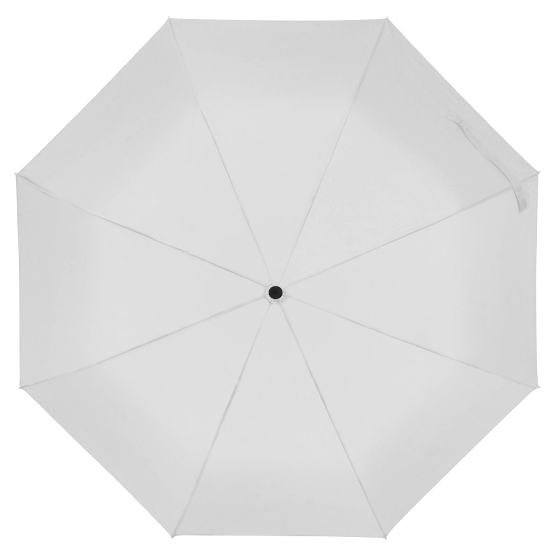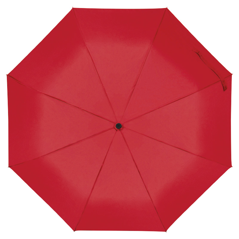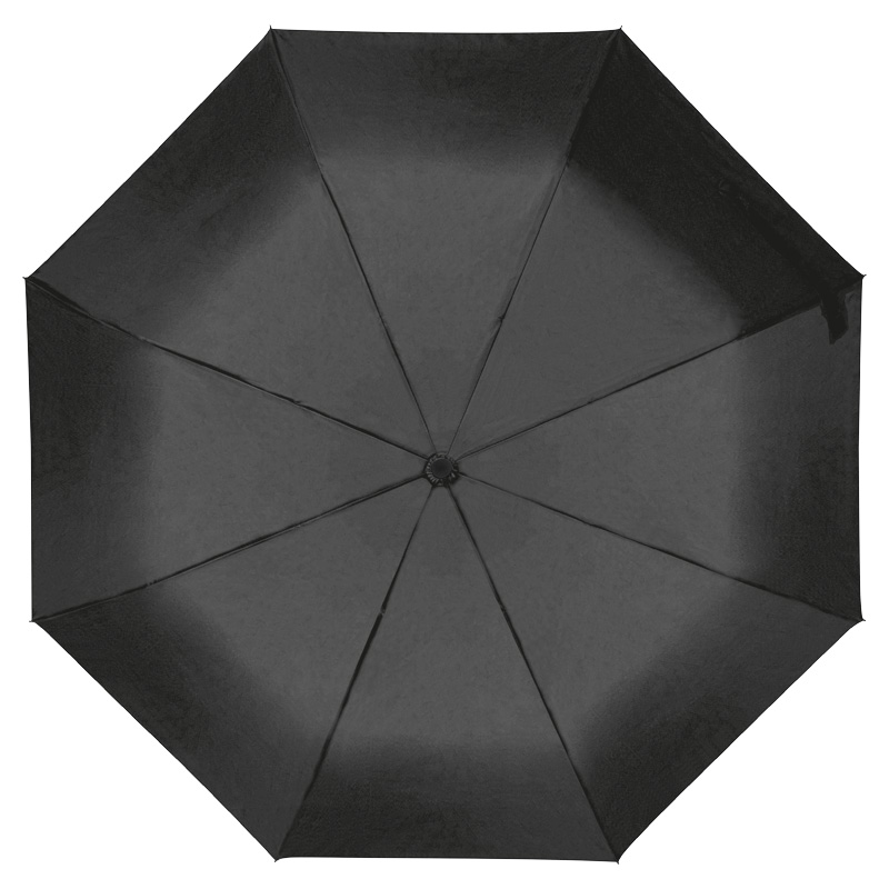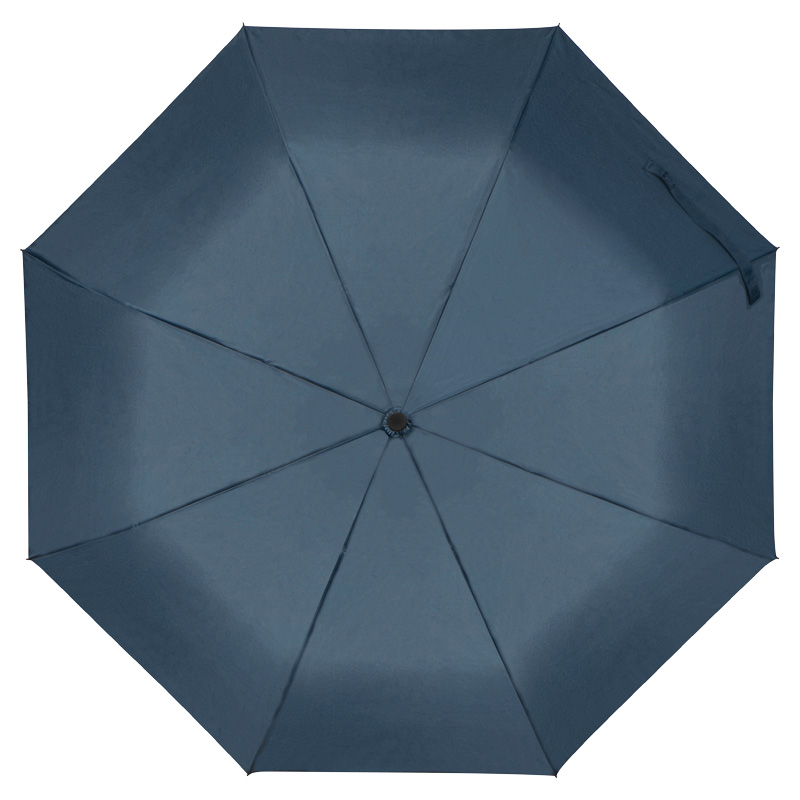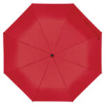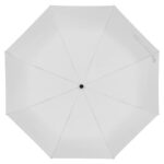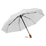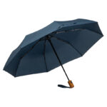 Автоматичен джобен чадър с рамка от фибростъкло, капак от рециклирани PET бутилки, дървена дръжка и каишка за китка.