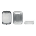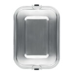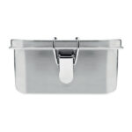 Кутия за храна от неръждаема стомана със здрави и сигурни странични катарами. Включително вътрешен разделител. Вместимост: 1200 мл.
