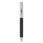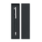 Метална завъртяща се химикалка с RPET полиестерен детайл в подаръчна кутия. Синьо мастило.