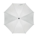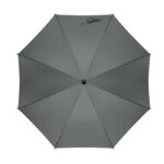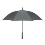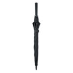 23-инчов автоматично отворен ветроустойчив чадър от 190T понге с рамка от фибростъкло и черна дръжка и пластмасови накрайници. ABS дръжка с гумено покритие. Ръчно затваряне.