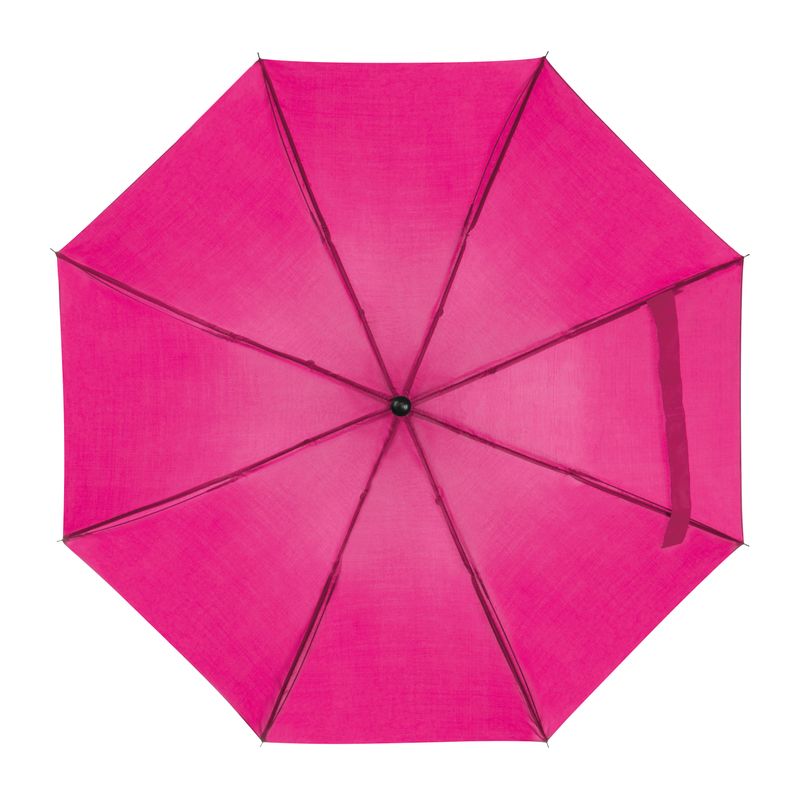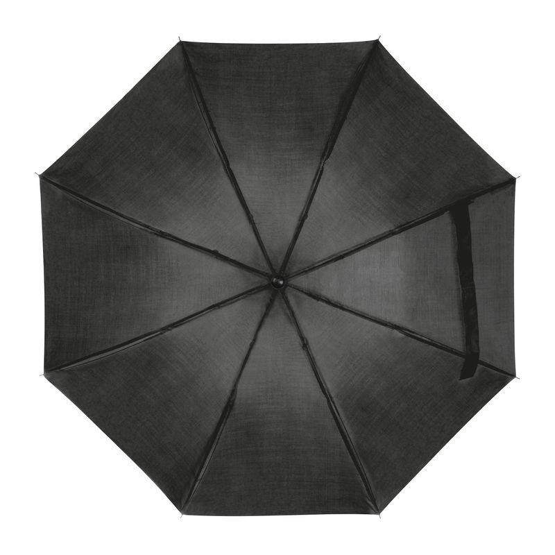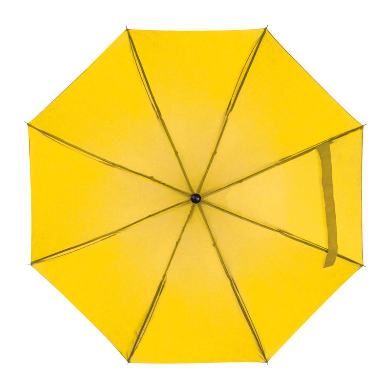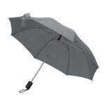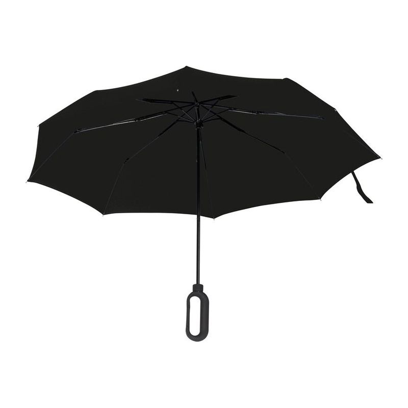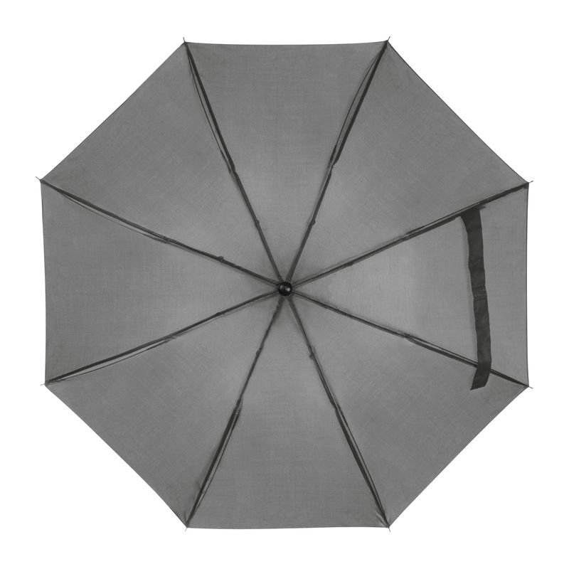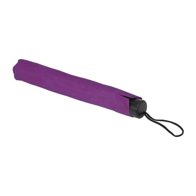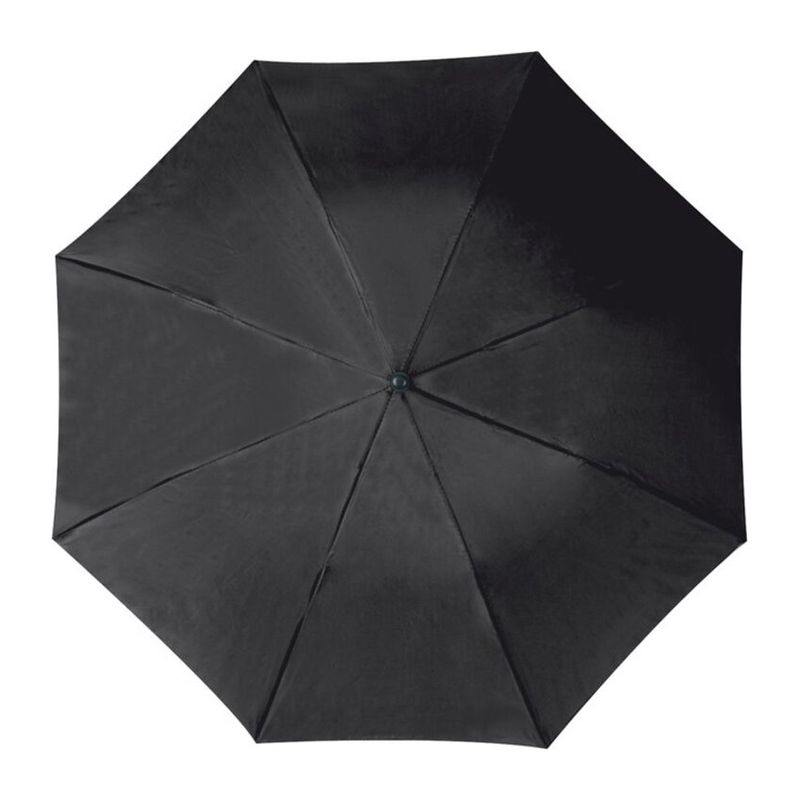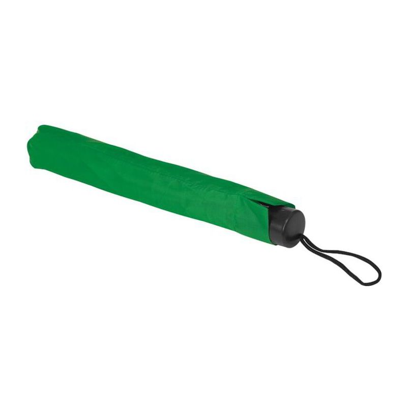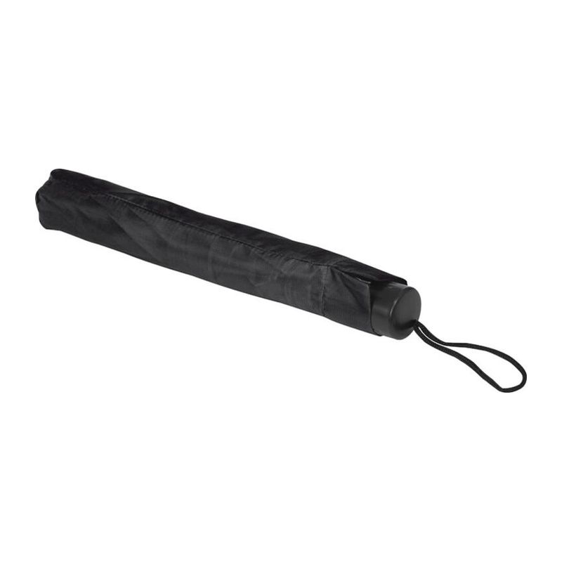 Малък и удобен, така че можете да го носите навсякъде. Удобен сгъваем чадър с метален телескопичен прът и сенник от 170T полиестер, черна пластмасова ръкохватка и примка за ръка.