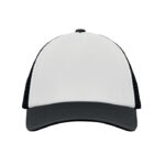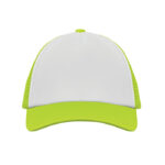 5 панелна шапка за камиони от полиестер 140-150 gr/m² с регулиращо се пластмасово затваряне. Бял преден панел и цветна козирка с подложка от пяна. Мрежести панели отстрани. Размер 7 1/4.