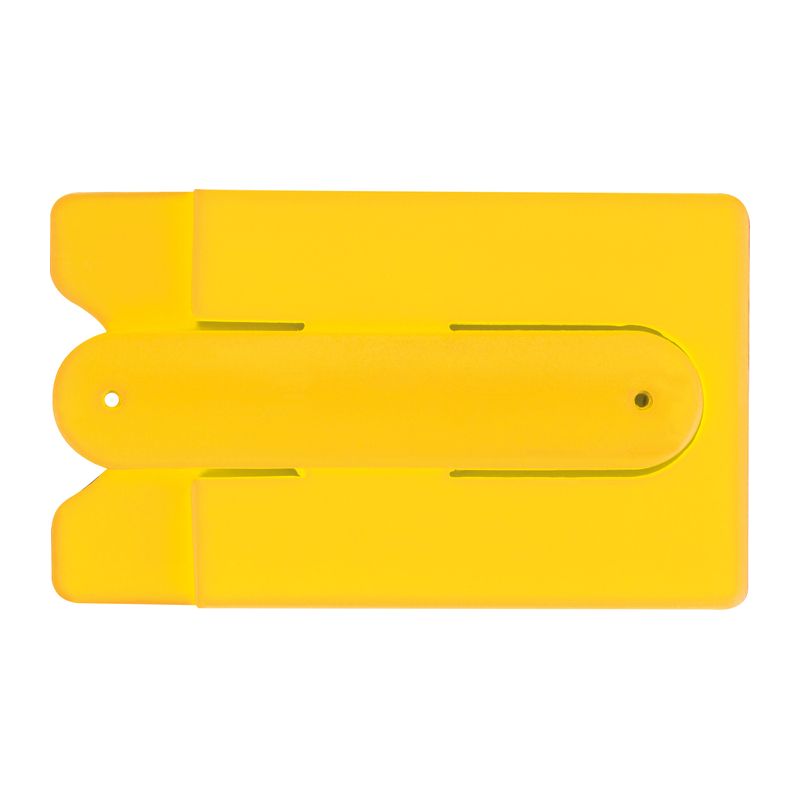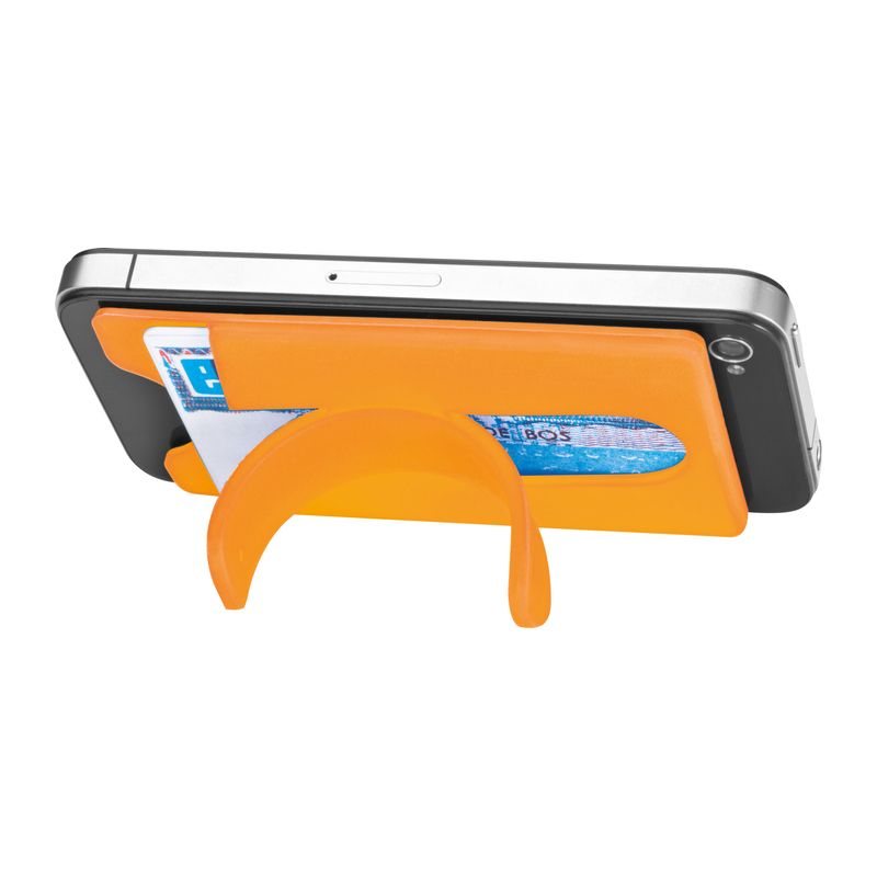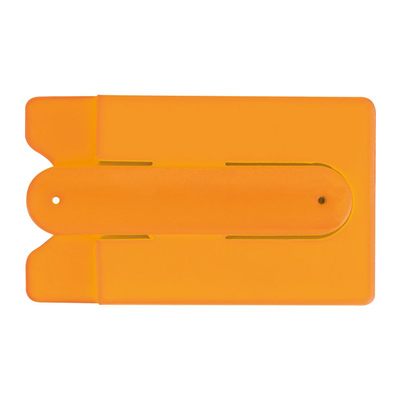 Малък силиконов държач за карти. Лесно се фиксира на гърба на смартфона с помощта на залепващо фолио. Държачът може да се използва например за кредитни карти, визитни картички и други и също така осигурява сгъваема стойка за мобилни телефони.