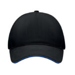 Бейзболна шапка с 5 панела от плътен матиран кепър памук 260 g/m2 със сребриста стоманена катарама. 4 бродирани капси в съответстващ цвят. Размер 7 1/4.