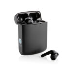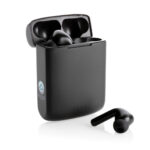 Уникални двойни зареждащи се безжични слушалки с вграден слънчев панел в корпуса, изработен от рециклиран ABS, сертифициран по RCS. Общо рециклирано съдържание: 21% на базата на общото тегло на артикула. RCS сертификацията гарантира напълно сертифицирана верига за доставки на рециклирани материали. Високоговорителят използва висококачествени монокристални слънчеви панели с 19% процент на преобразуване. Степента на зареждане зависи от условията. Скорост на зареждане соларна: 5V/50mA. Перфектно пасващите слушалки имат батерия от 35 mAh и могат да се презареждат в кутията за зареждане от 300 mAh в рамките на 2 часа. С функция за автоматично сдвояване толкова лесно да се сдвоите с вашето мобилно устройство. Време за възпроизвеждане на средна сила на звука до 5 часа. С BT 5.3 за оптимална връзка. Работно разстояние до 10 метра. С приемник и микрофон. Включва 3 размера силиконови накрайници за уши и RCS сертифициран рециклиран TPE кабел за зареждане. Опаковани в FSC® микс крафт опаковка. Артикул и аксесоари 100% без PVC.
