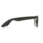 Слънчеви очила, направени с GRS сертифицирана рециклирана PP рамка. Рециклираното съдържание на рамката е 100%. Общо рециклирано съдържание: 66% на базата на общото тегло на артикула. GRS сертификацията гарантира напълно сертифицирана верига за доставки на рециклирани материали. Лещите са опушен акрил и отговарят на EN ISO 12312-1, UV 400 и CAT 3. Опаковани в FSC® крафт ръкав.