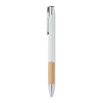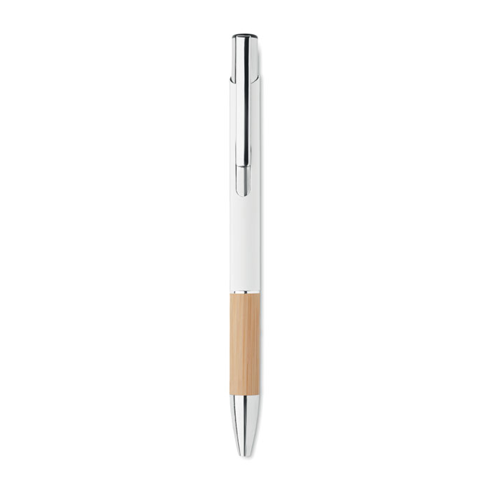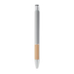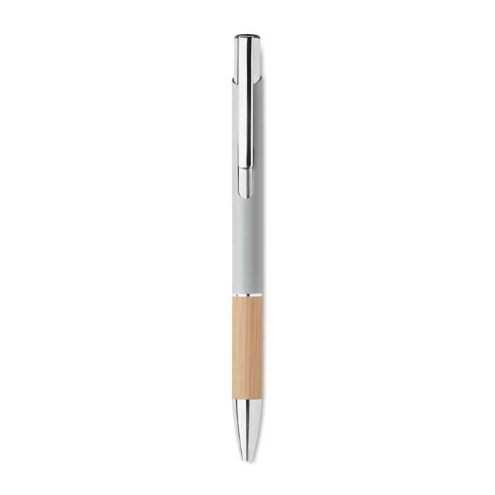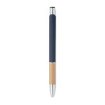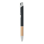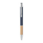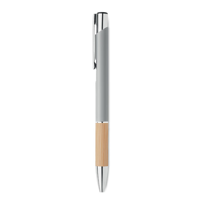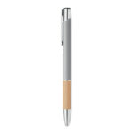 Алуминиева писалка с бутон с бамбукова дръжка. Синьо мастило.