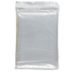 Сгъваем пластмасов дъждобран с прикрепена качулка, опакован в прозрачен полиетиленов плик.