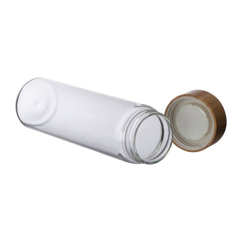 Еко продукт, стъклена бутилка с бамбуков капак и вместимост 500 мл.