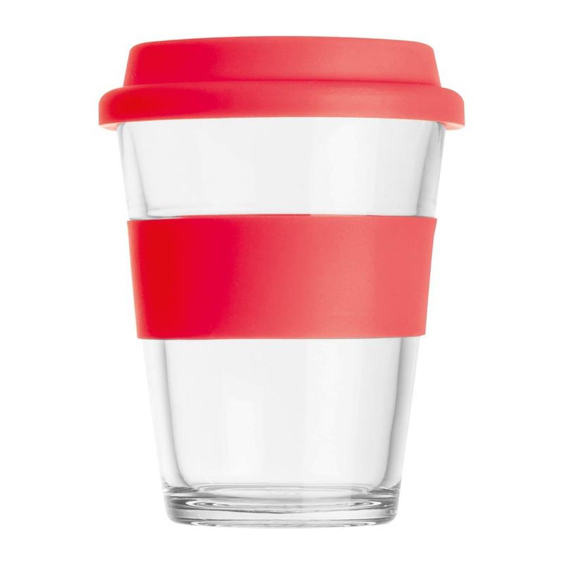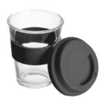 Стъклена чаша за пиене с вместимост 300 ml, силиконов капак и подходящ силиконов калъф.