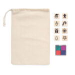 Комплект от 8 дървени коледни печати и многоцветна подложка за печати с 4 различни цвята. Предлага се в памучна торбичка с шнур.