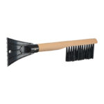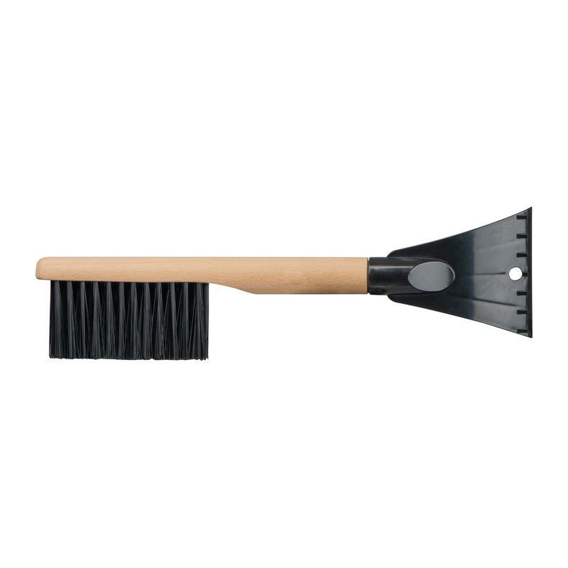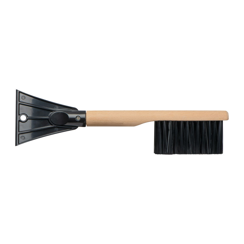 Стъргалка за лед 2 в 1 (четка за сняг и стъргалка за лед) с ергономична дървена дръжка, която не поврежда прозорци или каросерия.