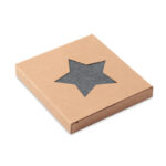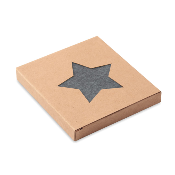 Комплект от 4 RPET филцови подложки във формата на звезда, представени в крафт кутия.