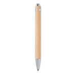 Дълготрайна химикалка без мастило с бутон с бамбуков корпус и лъскави хромирани елементи. Този химикал има връх от метална сплав и докато пишете, той окислява повърхността на хартията, без да оставя следи. Бамбукът е естествен продукт, възможно е да има леки вариации в цвета и размера на артикул, което може да повлияе на крайния резултат от декорацията.