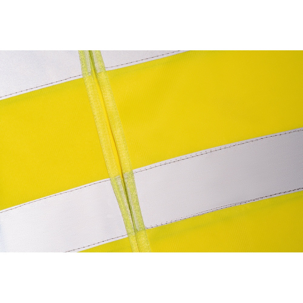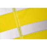 Жилетка с висока видимост от 100% полиестер, сертифицирана по EN ISO 20471 клас 2. Светлоотразителна жилетка с 2 хоризонтални светлоотразителни ленти и велкро преден отвор.