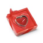 Свещ с форма на сърце и стъклена основа. Включена подаръчна кутия. Кутия: 93 x 93 x 25 мм