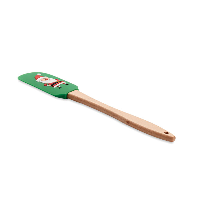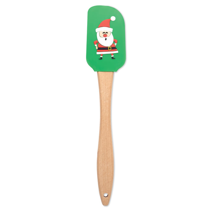 Коледна силиконова шпатула със сезонен дизайн и дървена дръжка.