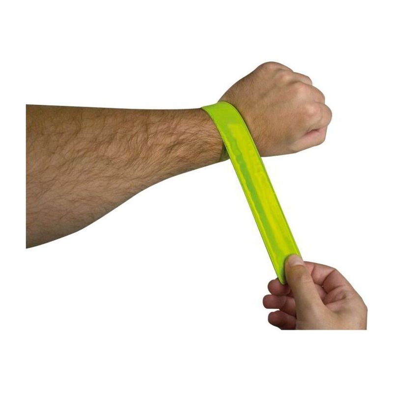 Бъдете видими и защитени с тази гъвкава светлоотразителна лента за китка, изработена от пластмаса с метална скоба. Лентата осигурява видимост за шофьорите, което ви предпазва в тъмни условия.