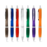 Химикалка от полиетилен с метален клипс. Предлага се в широка гама от цветове. Синьо мастило. Ø12 x 133 мм