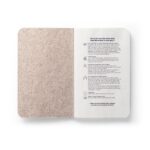 Тефтер А6 с гъвкава корица, изработен от отпадъци от чаени листа. Вътрешната хартия е изработена от памучни отпадъци и е изключително издръжлива. Съдържа 52 обикновени страници и хартиена лента с рисунка. В процеса на производство на този тефтер не са генерирани отпадъци, нито са използвани химикали или дървета. 100 x 145 мм