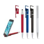 Химикалка с метализирано покритие и държач за мобилен телефон. Синьо мастило. ø11 x 144 мм