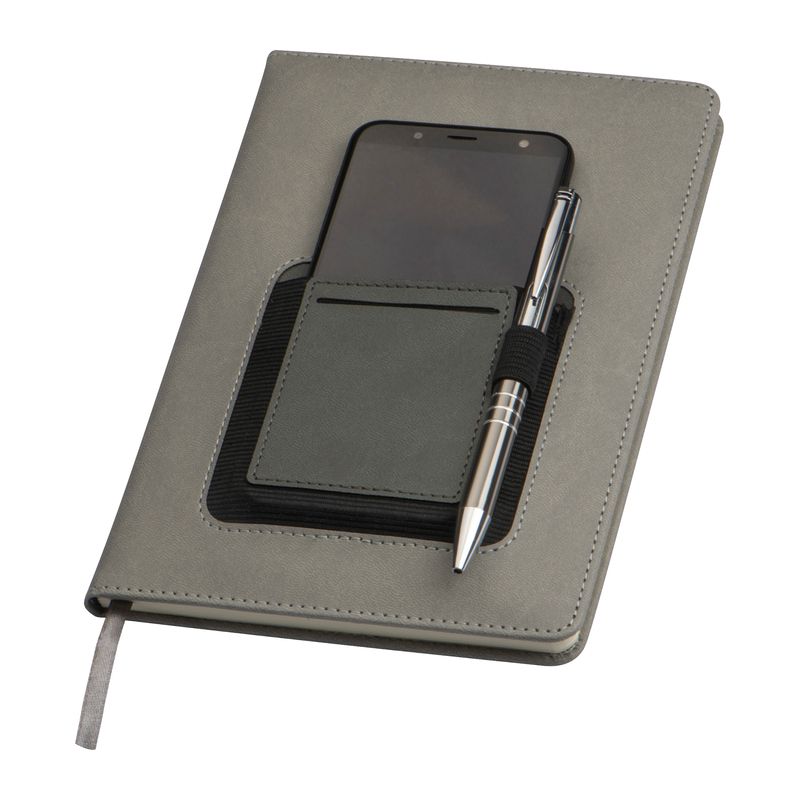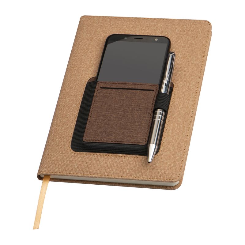 Елегантен тефтер DIN A5 със 160 пунктирани страници, отметки и халка за химикал, вложка и отделение за смартфон от външната страна на корицата.
