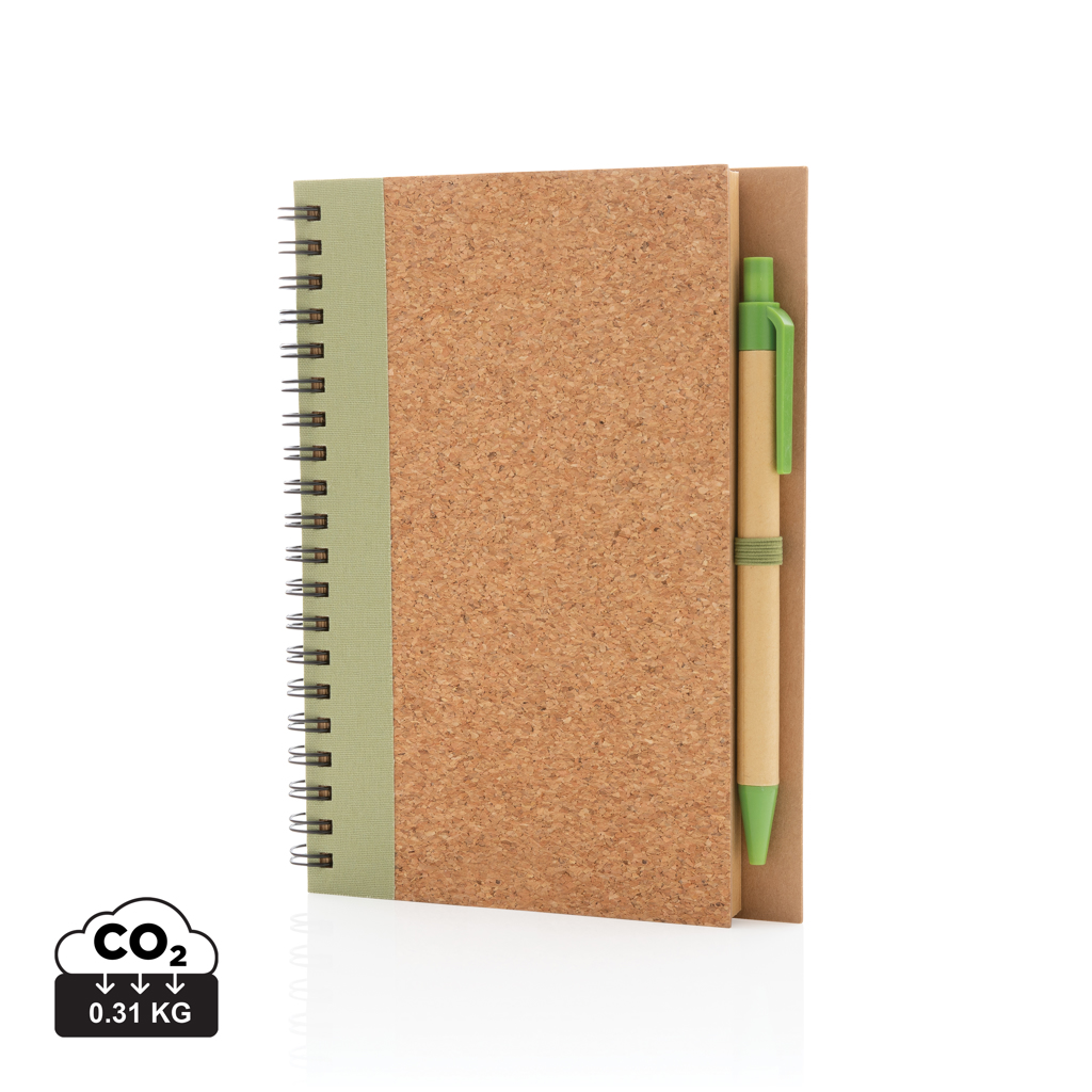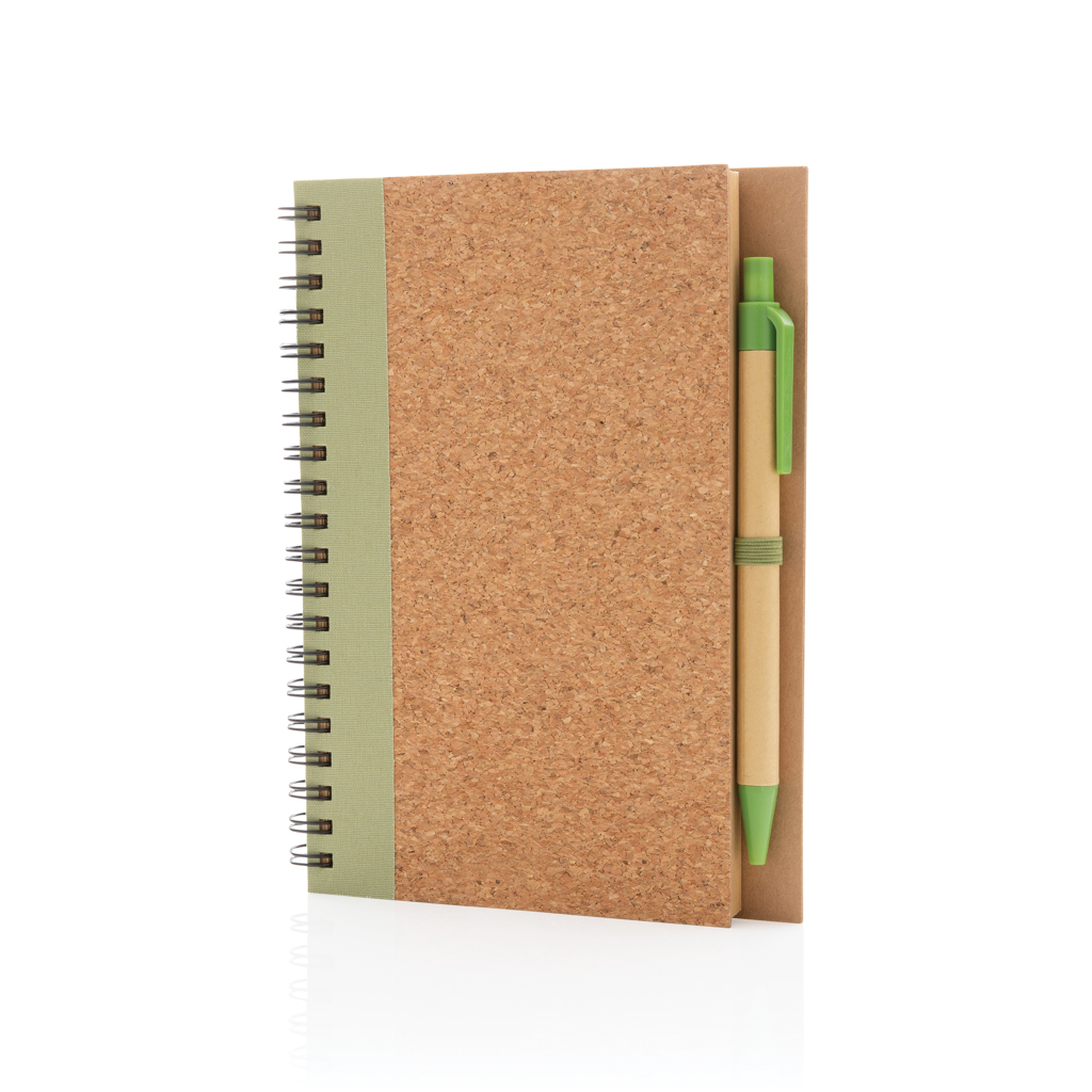 Следете вашите мисли, бележки, планове, задачи и други с този тефтер с коркова спирала и химикал. Тетрадката е с редована 70 гр. кремава рециклирана хартия със 70 листа / 140 страници. Тефтерът е с подходяща по цвят крафт химикалка. Дължината на писане на химикала е 600м със синьо немско мастило Dokumental.