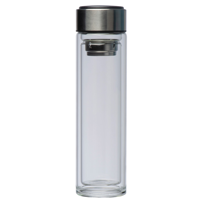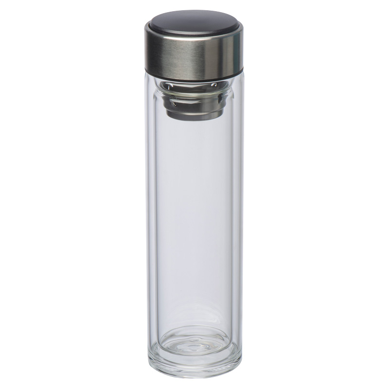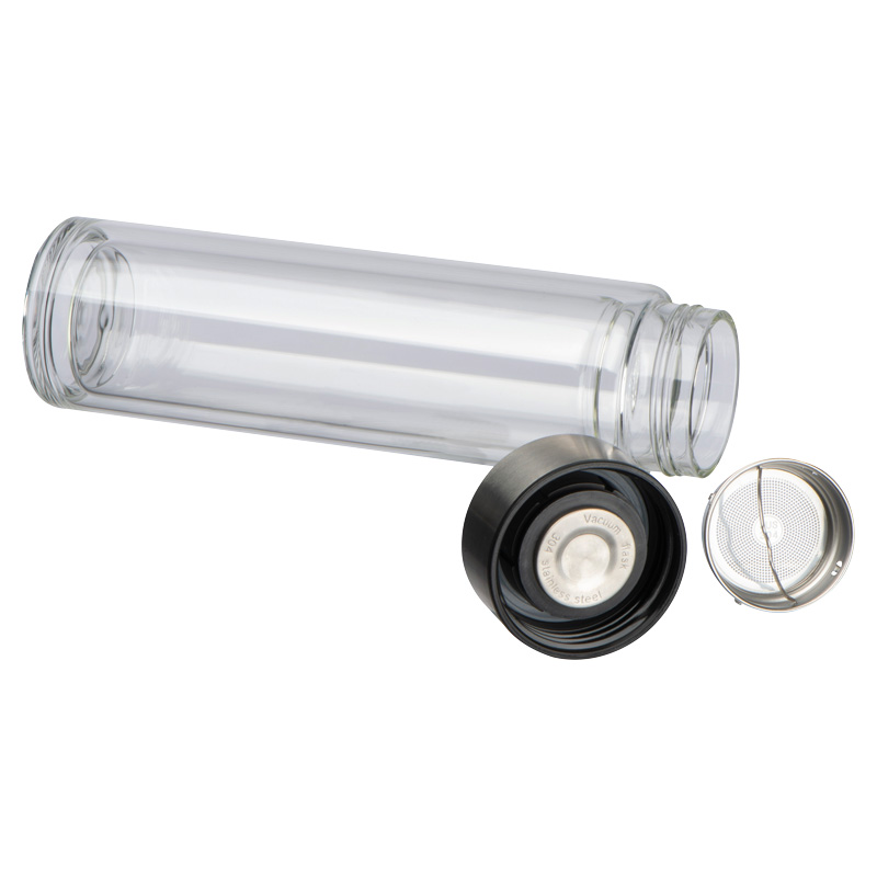 Термо бутилка от боросиликатно стъкло с цифров дисплей за температура в капака, сито и вместимост 400 ml.
