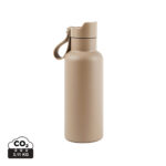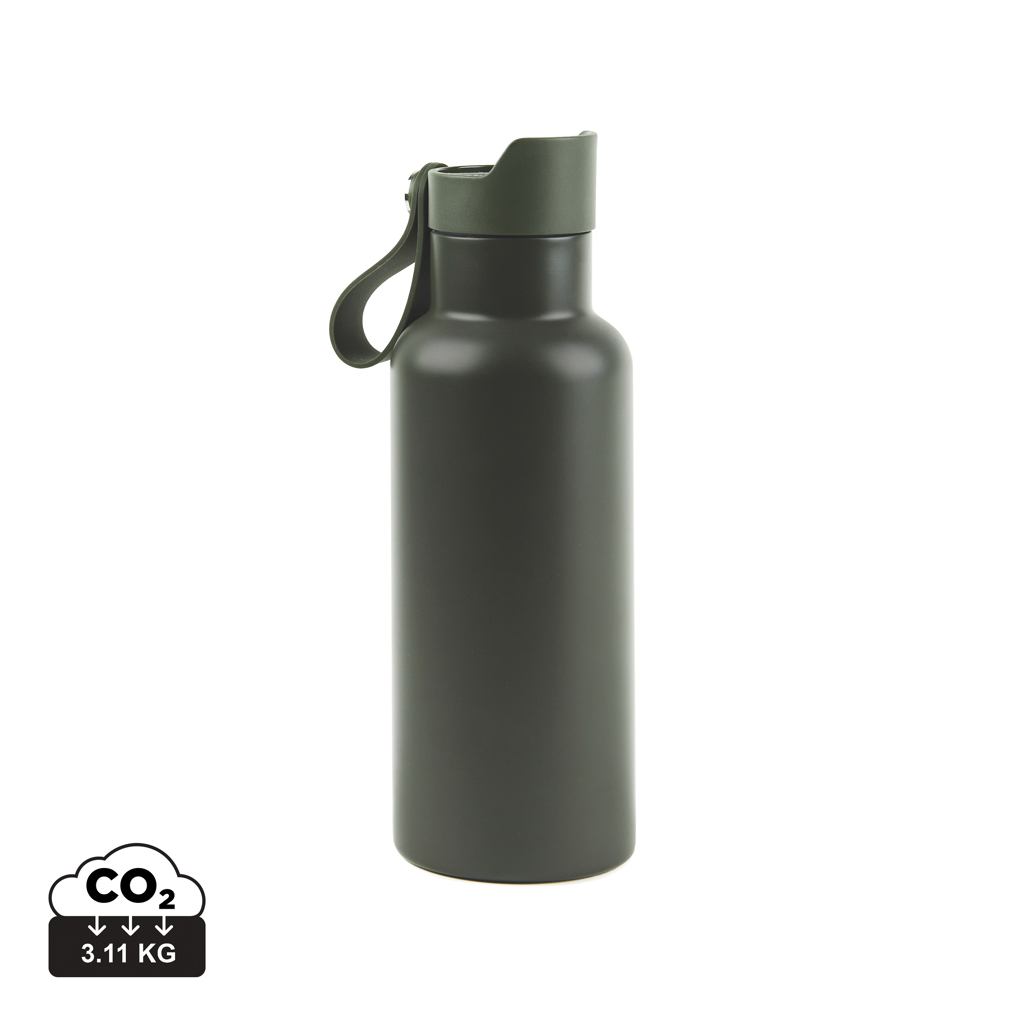 Практична и стилна бутилка за вода със здрава двойна стена. Вакуумно запечатан, за да запази напитките топли или студени до 6 часа. Насладете се на любимата си студена напитка, докато сте навън или носете сгряваща чаша чай или кафе, докато пътувате сутрин. Функция Push-mug. 500 мл.