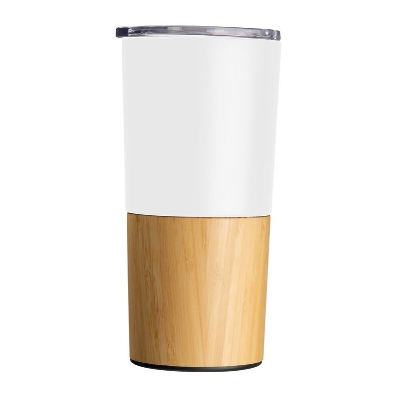 Стилна термо термочаша (двустенна, вакуумна) в комбинация от материали, неръждаема стомана и бамбук. Вместимост 500 мл.