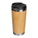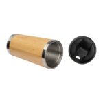 Пътна термочаша от неръждаема стомана с двойни стени с бамбуково покритие, непропусклива и вместимост 400 ml.