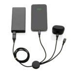 Кабел за зареждане, направен с RCS (Recycled Claim Standard) сертифициран рециклиран алуминий, рециклиран TPE и rPET. Общо рециклирано съдържание: 65% на базата на общото тегло на артикула. RCS сертификацията гарантира напълно сертифицирана верига за доставки на рециклирани материали. Алуминият не губи своите характеристики в процеса на рециклиране и може да се рециклира безкрайно. С двоен входен конектор: USB A и тип-C. Троен изход: Apple Lightning/Micro и Type C, предлагащ общо 6 опции за зареждане С RCS сертифициран плетен рециклиран PET кабел с дължина 120 см. Опаковани в смесени опаковки FSC®. Подходящ за зареждане, синхронизиране и съвместим с игра в кола. Поддържа бързо зареждане до 9V/2A.