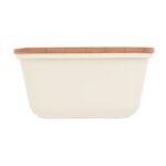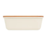 Кутия за обяд или сандвич от PP с бамбуков капак. Бамбукът е естествен продукт, възможно е да има леки вариации в цвета и размера на артикул, което може да повлияе на крайния резултат от декорацията.