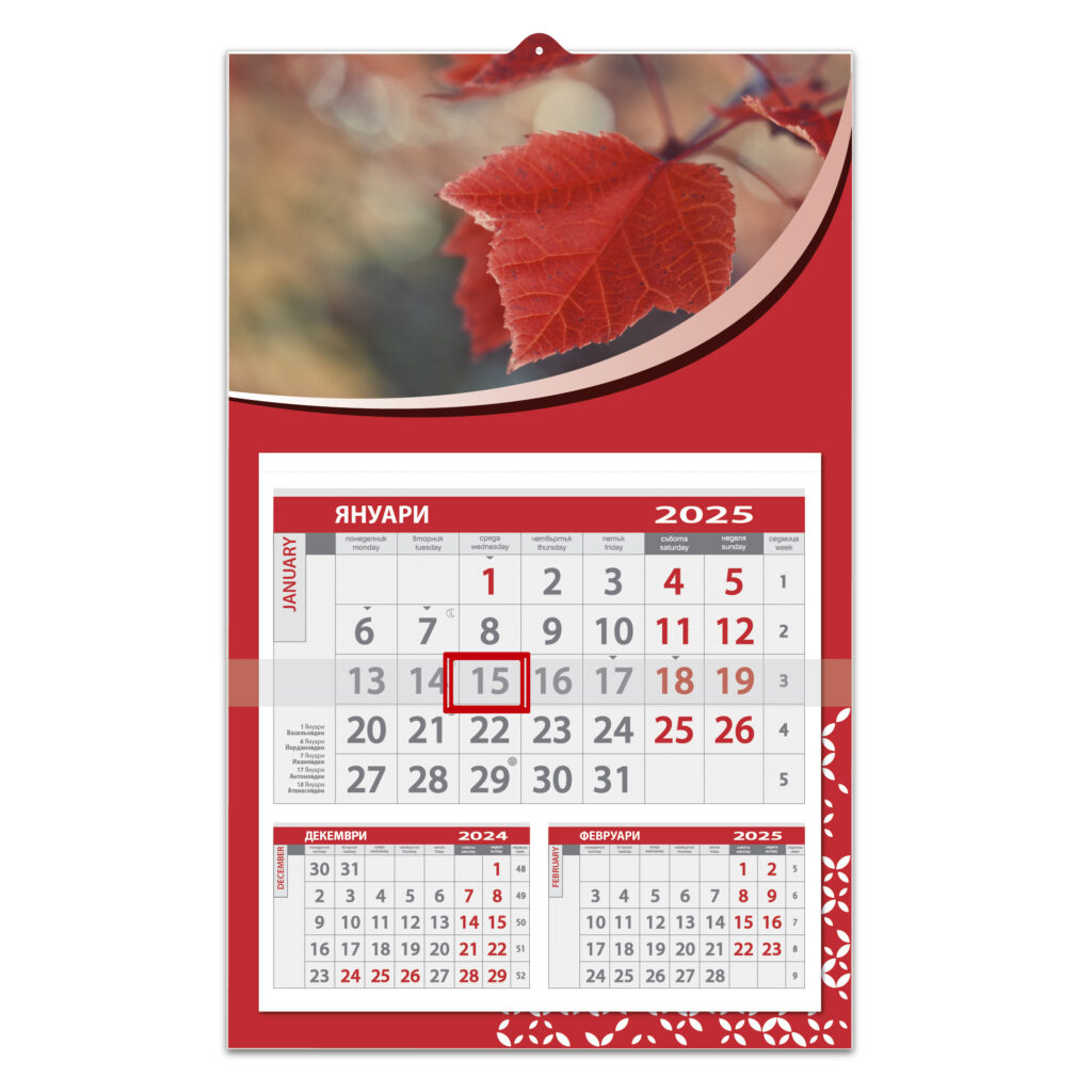 Трисекционен работен календар с пълноцветен печат на глава и подложка