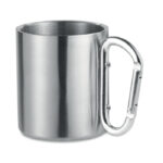 Двустенна чаша от неръждаема стомана, с дръжка с карабинер. Вместимост: 220 мл.