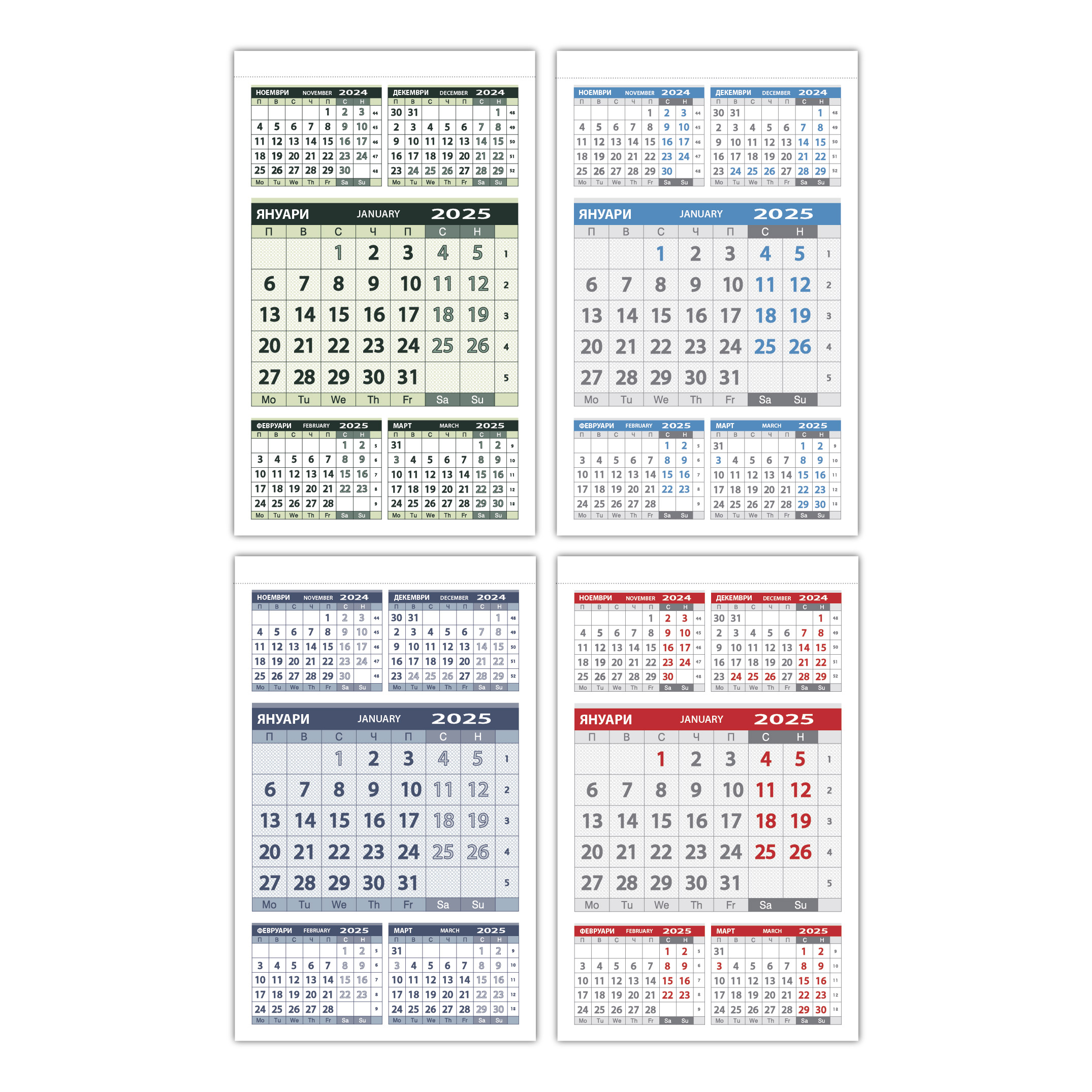Едносекционен работен календар с пълноцветен печат на глава и подложка, размер 315 х 485 мм