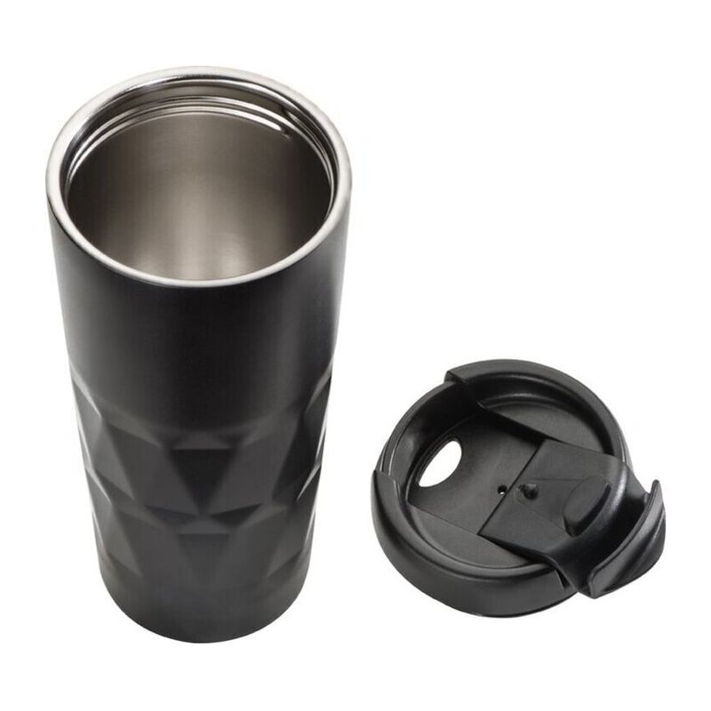 Устойчива на течове, двустенна вакуумно изолирана пътна термочаша и термочаша с пластмасов капак. Вместимост 500 мл.