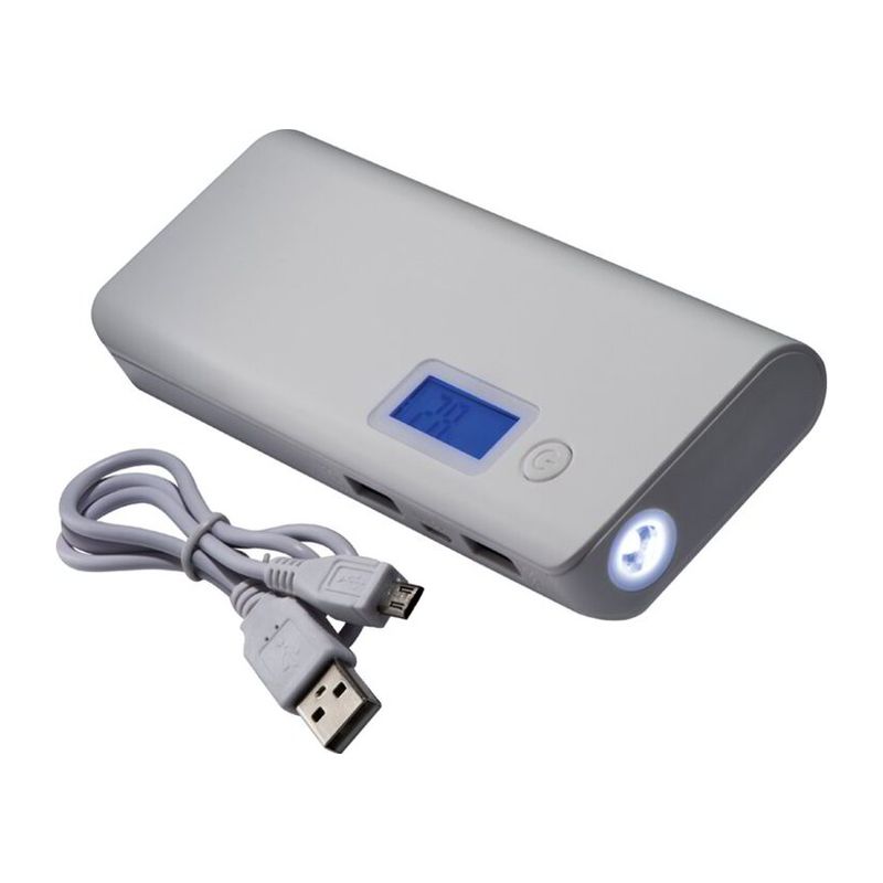 Външна батерия с капацитет 10 000 mAH, USB кабел за зареждане и цифров дисплей за работа за показване на оставащата мощност. Можете да презареждате смартфона си няколко пъти с тази пластмасова захранваща батерия.