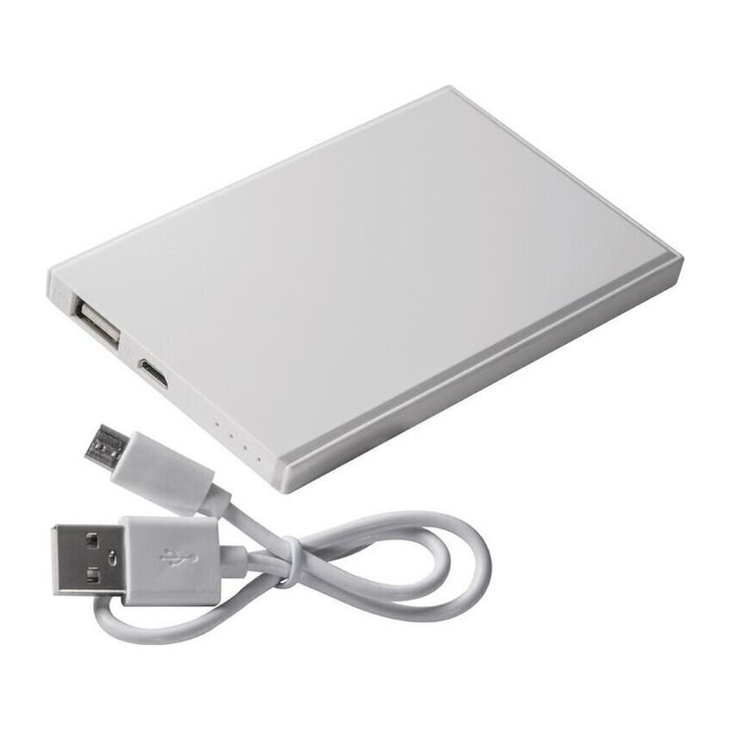 Пластмасова външна батерия с капацитет 2200 mAh и USB връзка в пакет, така че вашият смартфон / таблет да може да се зарежда по пътя.