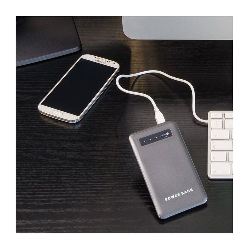 Тази лесна за използване външна метална батерия с капацитет 4000 mAh измъква всеки смартфон от проблеми. USB кабелът, включен в пакета, може да се зарежда от компютър.