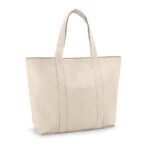 Торба изработена от 100% памук с плътност 280 г/м², включваща преден джоб и вътрешен джоб с цип за допълнително съхранение.