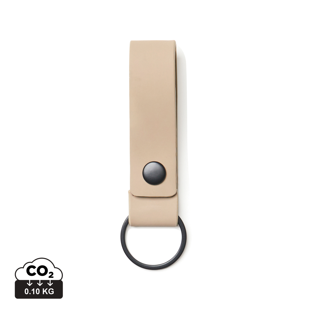 Ключодържател с примка от еластична веган/набук PU кожа. Подсигурен с метален нит, нашият ключодържател прави както за цялостния ви вид, така и за предпазването на ключовете ви от изгубване в чантата ви.