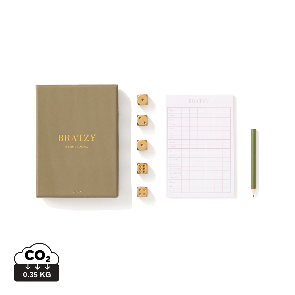 Това е Yatzy в луксозна опаковка! Със златни зарове и също толкова ексклузивен молив, ние повишаваме Yatzy до Bratzy. Тази игра се доставя в стилна кутия с отпечатан златист текст, което я прави едновременно забавна за подаряване и за използване като хубав детайл върху масичката за кафе.