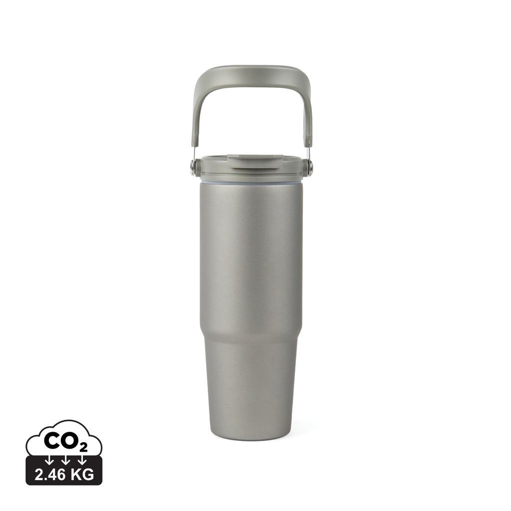 Тази вакуумирана бутилка от рециклирана неръждаема стомана се отличава с модерен дизайн, който съчетава функционалност със стил. С голям капацитет от 880 ml, той е идеален за целодневна хидратация по време на ежедневните ви приключения. Бутилката включва функционална дръжка за лесно пренасяне, а капакът предлага две възможности за приемане на напитки. Наслаждавайте се на напитките си с тази бутилка, която ги поддържа студени до 16 часа и топли до 3 часа, гарантирайки, че ще останете освежени през цялото си пътуване. Устойчив на разливане. Не може да се мие в съдомиялна машина или в микровълнова печка, само за ръчно миене. Включително FSC®-сертифицирана крафт опаковка. Сертифициран от RCS (Recycled Claim Standard), RCS сертификатът гарантира, че цялата верига на доставки на рециклирани материали е сертифицирана. Общото рециклирано съдържание се основава на общото тегло на продукта. Този продукт съдържа 65% RCS-сертифицирана рециклирана неръждаема стомана.