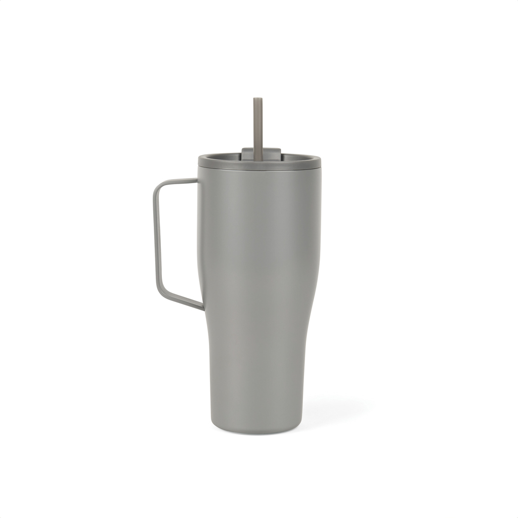 Елегантна и издръжлива вакуумна бутилка, изработена от рециклирана неръждаема стомана. Със своя стилен дизайн и удобна метална дръжка, заедно със сламка, тази бутилка не е просто спътник за хидратация, а изящна част за вашите ежедневни приключения. Независимо дали пътувате до работа, изпълнявате поръчки или изследвате природата, Eos Voyager е вашият идеален спътник. Неговата усъвършенствана изолационна технология поддържа вашите напитки на идеалната температура в продължение на часове, като гарантира, че всяка глътка е толкова освежаваща, колкото и първата. Устойчив на разливане. Не може да се мие в съдомиялна машина или в микровълнова печка, само за ръчно миене. Включително FSC®-сертифицирана крафт опаковка. Сертифициран от RCS (Recycled Claim Standard), RCS сертификатът гарантира, че цялата верига на доставки на рециклирани материали е сертифицирана. Общото рециклирано съдържание се основава на общото тегло на продукта. Този продукт съдържа 80% RCS-сертифицирана рециклирана неръждаема стомана.