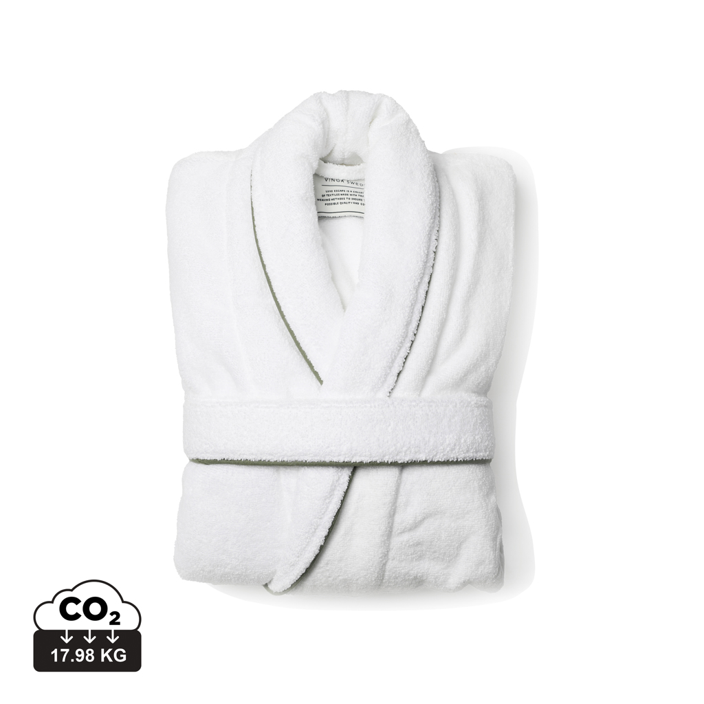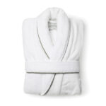 Луксозна роба от 100% памук. Халатът е класически модел с допълнителна широка яка и колан на талията. Освен това има няколко хубави детайла, като затворени шевове и контрастиращи кантове на яката. Изработена от дълга памучна нишка с неусукани нишки. Резултатът е невероятно мека роба, която никога няма да искате да свалите.
