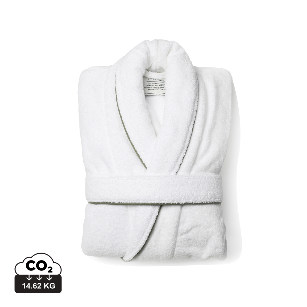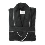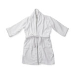 Луксозна роба от 100% памук. Халатът е класически модел с допълнителна широка яка и колан на талията. Освен това има няколко хубави детайла, като затворени шевове и контрастиращи кантове на яката. Изработена от дълга памучна нишка с неусукани нишки. Резултатът е невероятно мека роба, която никога няма да искате да свалите.