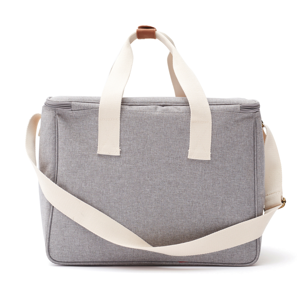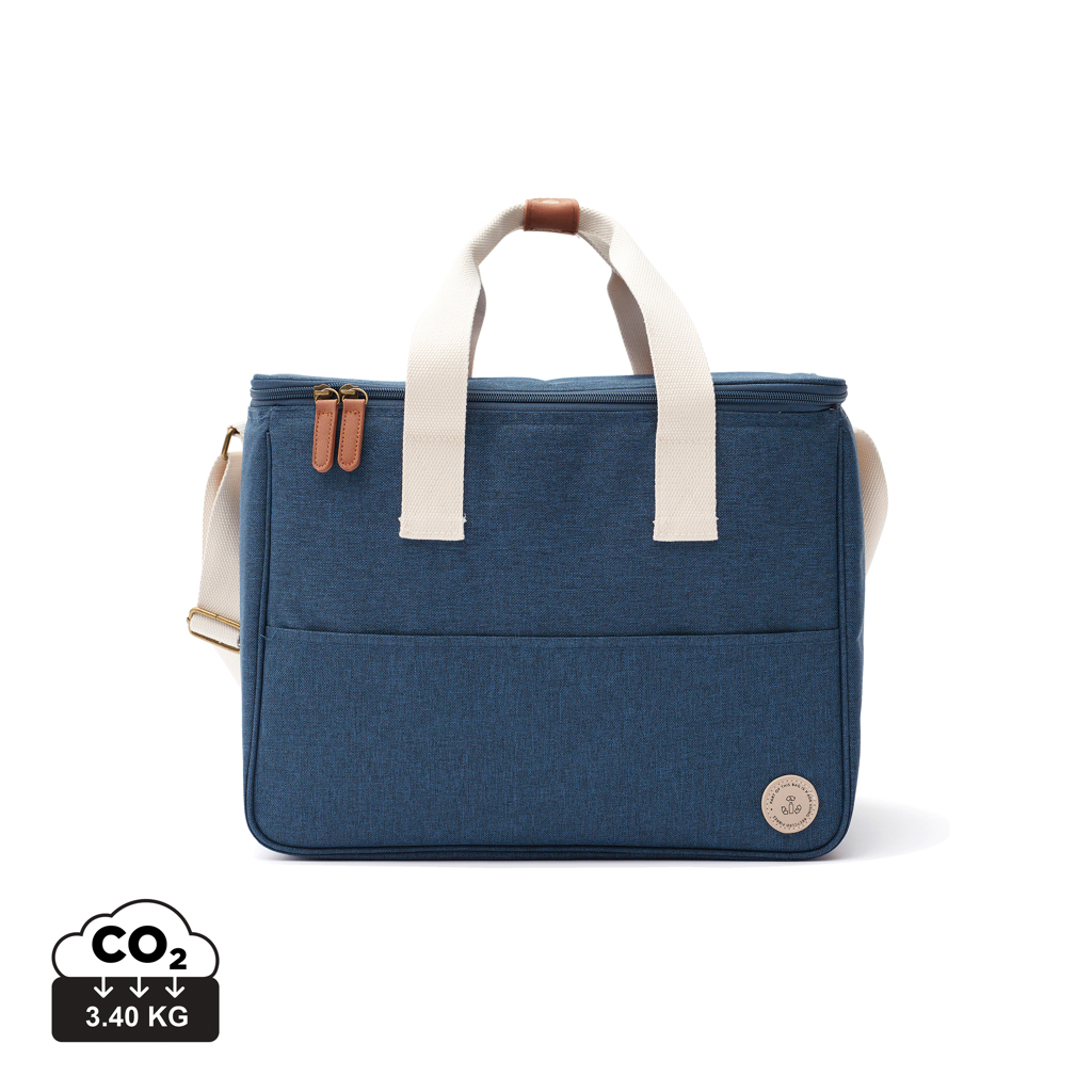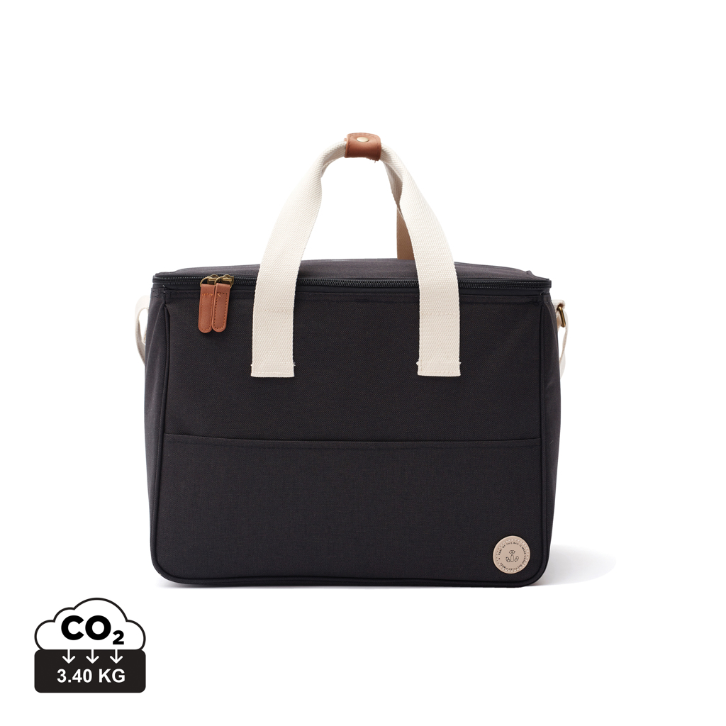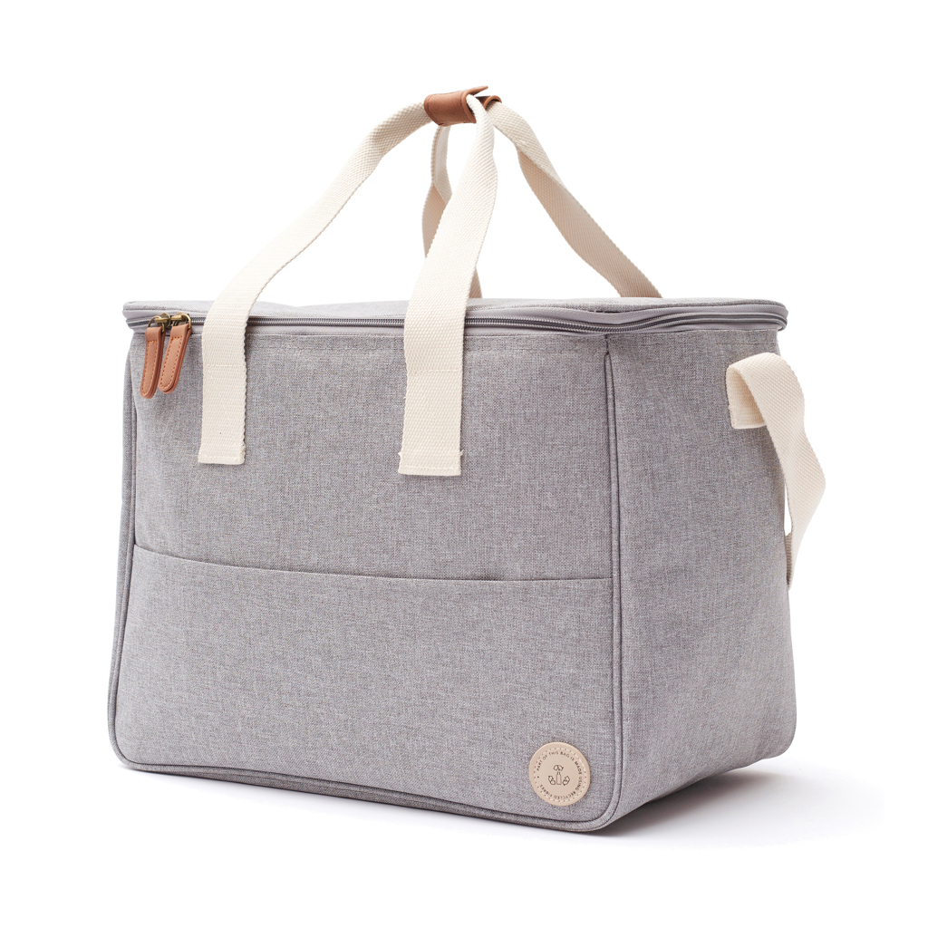 Тази просторна охладителна кошница с капак означава края на старите скучни пластмасови версии. Хладилната чанта е от меланжирана материя, придружена с PU детайли, което я прави толкова красива, колкото и обикновена чанта. Произведен от 50% рециклиран полиестер от рециклирани PET бутилки. PEVA подплатата запазва хладно за дълъг период от време и също така е лесна за почистване. И двете с презрамка и дръжки.