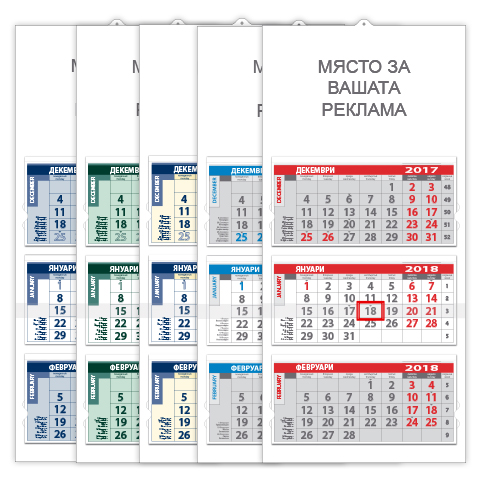 Едни от най- разпостранените работни календари са едносекционните и трисекционните. Съчетаващ в себе си стенен календар с по-голяма функционалност и подреденост, то те са лидери сред работни календари. Лесно може да следите както предстоящите дати, то и сегашните.